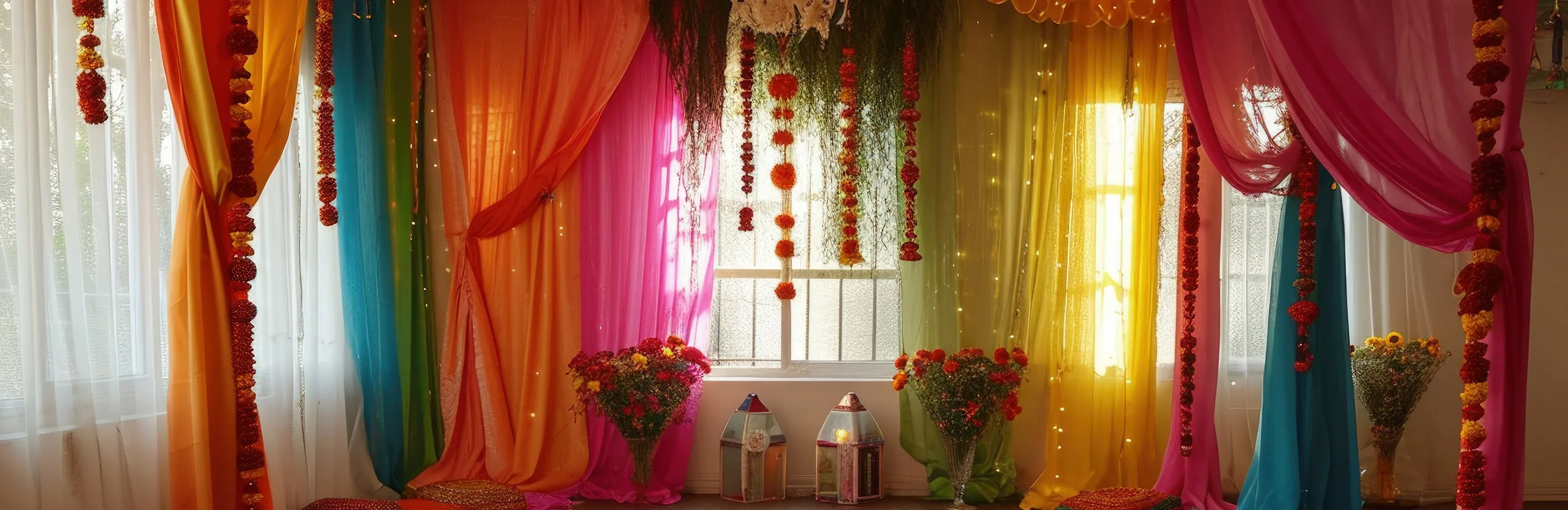 - Multi-color flower garlands and decor props